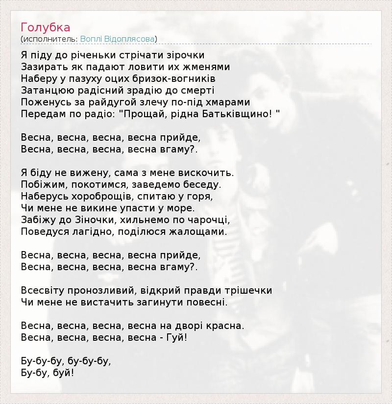 Это интересно:Воплі Відоплясова, ВВ (читается как «Вопли Видоплясова») — украинская рок-группа. Первое выступление группы состоялось в 1987 году.ОснованиеОрганизаторами группы стали гитарист Юрий Здоренко и басист Александр Пипа, которые до этого с 1984 года играли хэви-метал в группе SOS. Переломным моментом для друзей-музыкантов стал 1986 год, когда произошла встреча Здоренко и Пипы с... продолжение