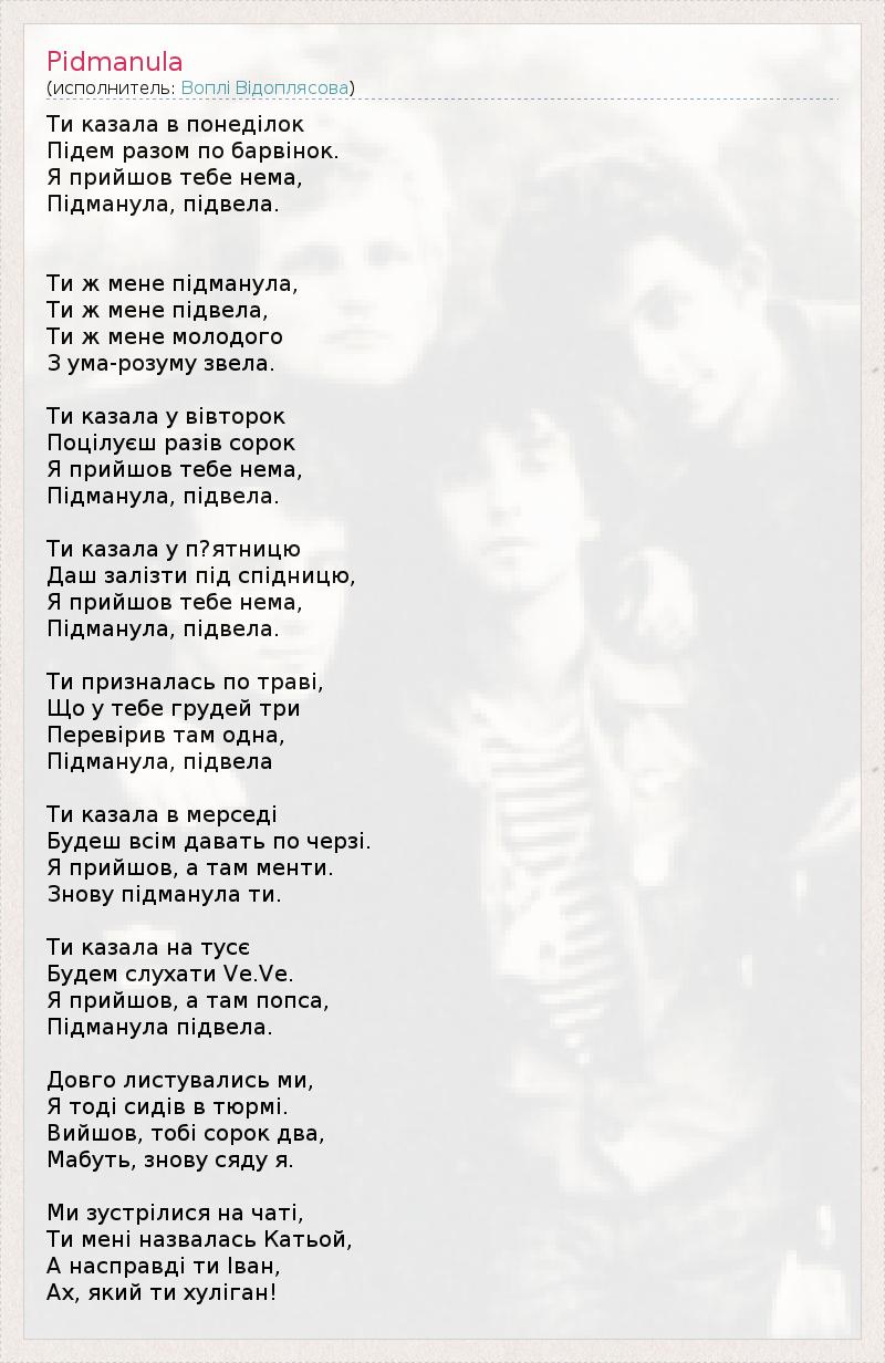 А как ты думаешь, о чем песня "Pidmanula" ?