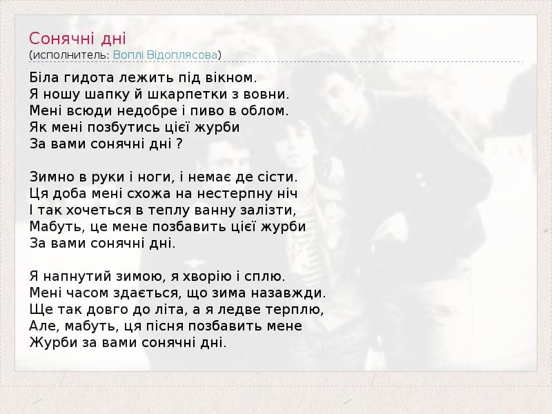 А как ты думаешь, о чем песня "Сонячні дні" ?