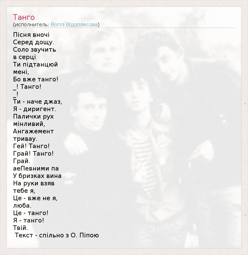Это интересно:Воплі Відоплясова, ВВ (читается как «Вопли Видоплясова») — украинская рок-группа. Первое выступление группы состоялось в 1987 году.ОснованиеОрганизаторами группы стали гитарист Юрий Здоренко и басист Александр Пипа, которые до этого с 1984 года играли хэви-метал в группе SOS. Переломным моментом для друзей-музыкантов стал 1986 год, когда произошла встреча Здоренко и Пипы с... продолжение
