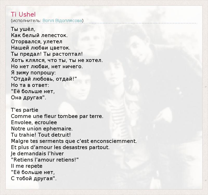 А как ты думаешь, о чем песня "Ti Ushel" ?