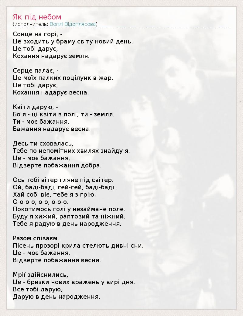 Это интересно:Воплі Відоплясова, ВВ (читается как «Вопли Видоплясова») — украинская рок-группа. Первое выступление группы состоялось в 1987 году.ОснованиеОрганизаторами группы стали гитарист Юрий Здоренко и басист Александр Пипа, которые до этого с 1984 года играли хэви-метал в группе SOS. Переломным моментом для друзей-музыкантов стал 1986 год, когда произошла встреча Здоренко и Пипы с... продолжение