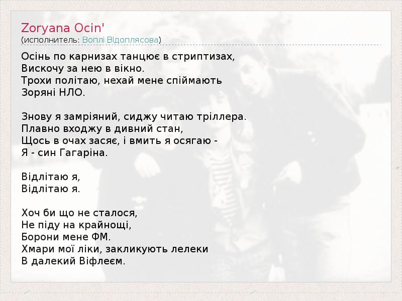 А как ты думаешь, о чем песня "Zoryana Ocin'" ?