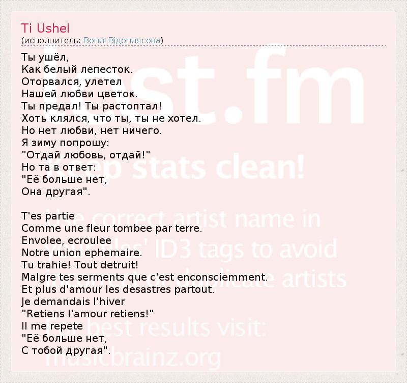 А как ты думаешь, о чем песня "Ti Ushel" ?