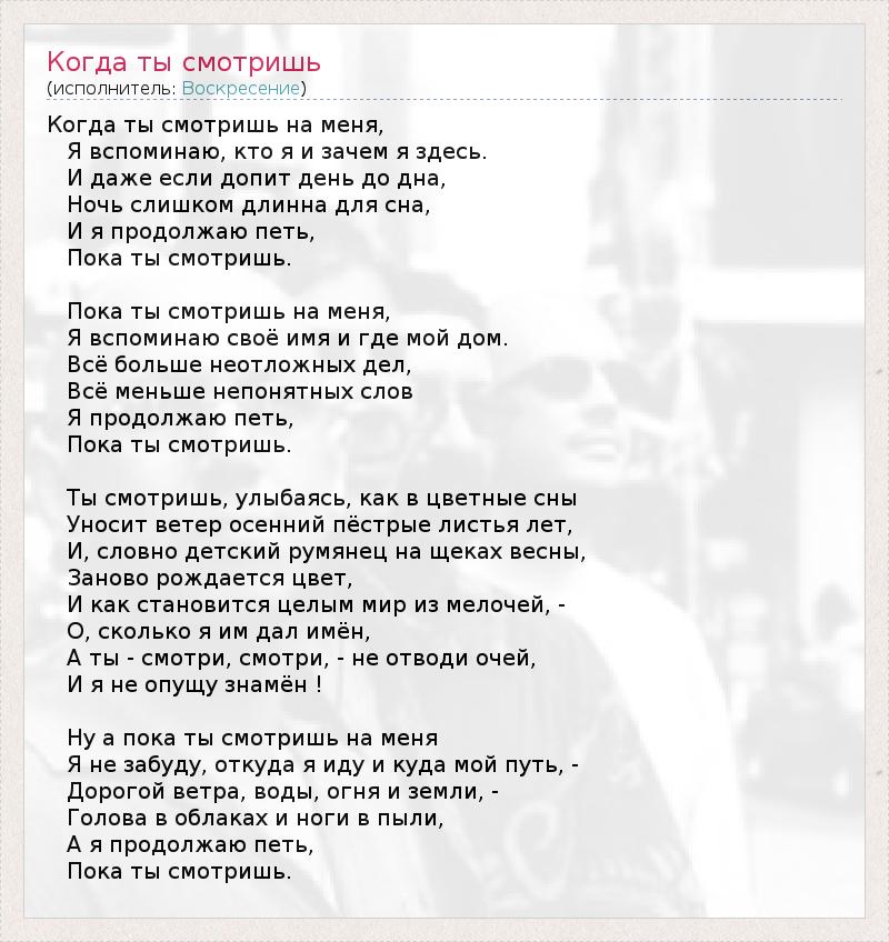 ГлавнаяИсполнителиВоскресениеКогда ты смотришь