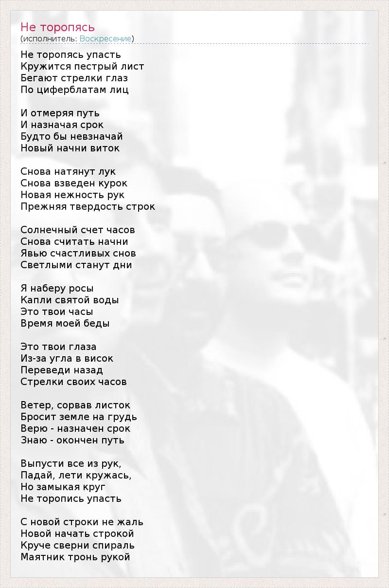 А как ты думаешь, о чем песня "Не торопясь" ?
