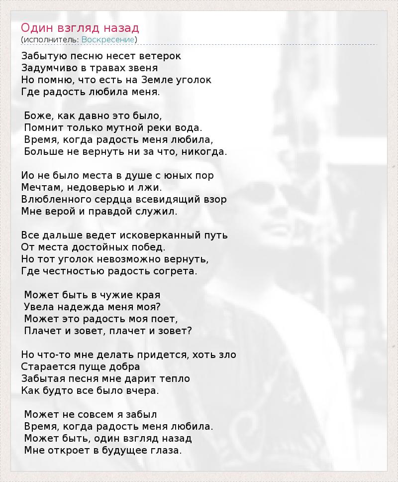 ГлавнаяИсполнителиВоскресениеОдин взгляд назад