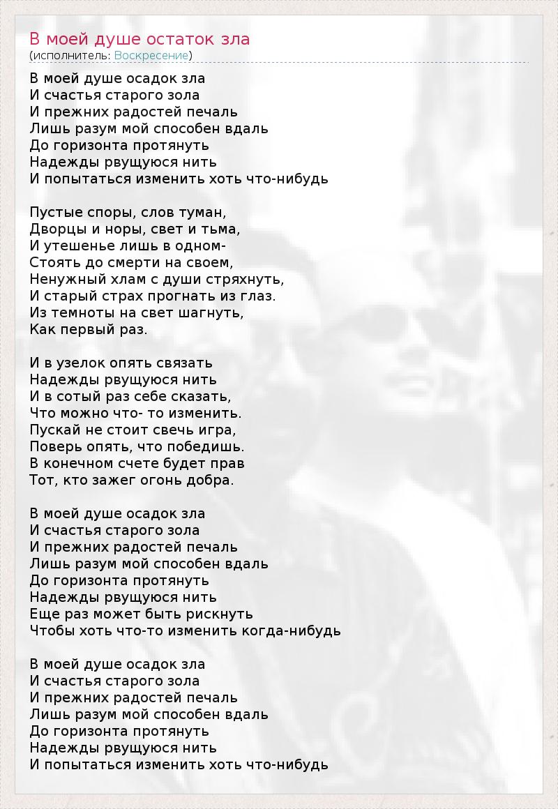 ГлавнаяИсполнителиВоскресениеВ моей душе остаток зла