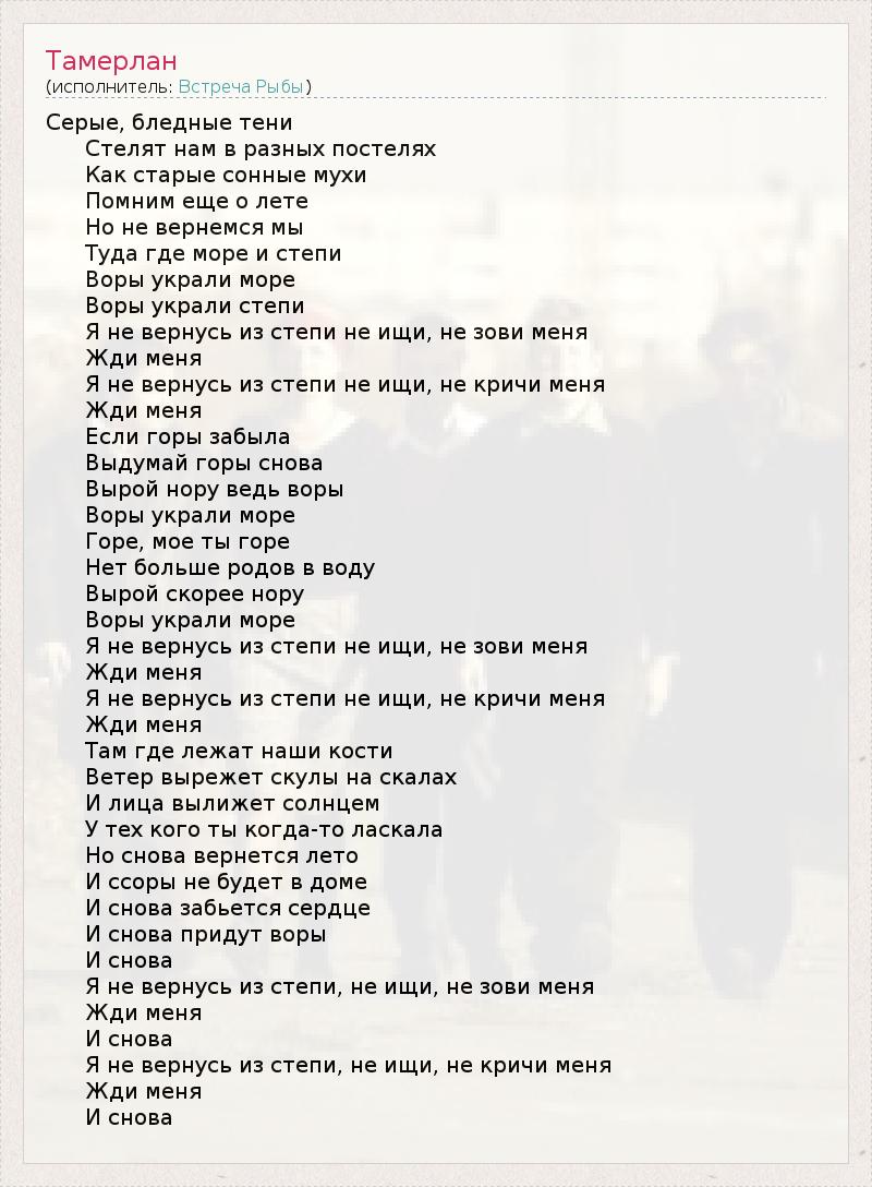А как ты думаешь, о чем песня "Тамерлан" ?