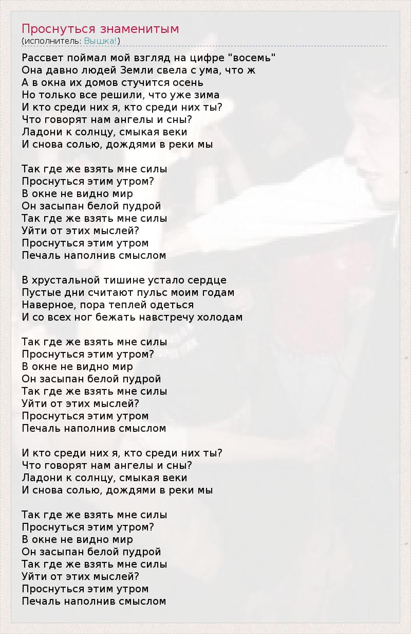 ГлавнаяИсполнителиВышка!Проснуться знаменитым