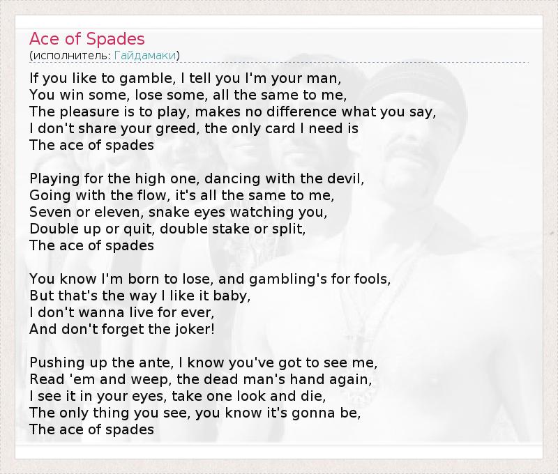 А как ты думаешь, о чем песня "Ace of Spades" ?