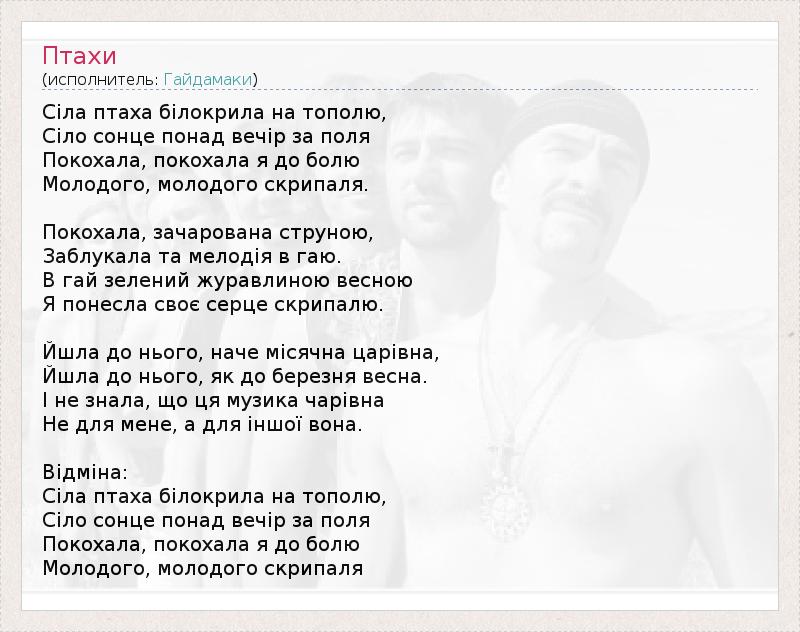 Это интересно:«Гайдамаки» — современные последователи украинского культа традиций. Посредством своей духовной и музыкальной честности они преданы делу возврата их культуры из рук коррупции, аморального сознания.«Гайдамаки» начали свою карьеру в 1991 году, после того как Украина объявила о своей независимости от Советского Союза. В то время группа была известна как «Актус» и, в основном, играла... продолжение