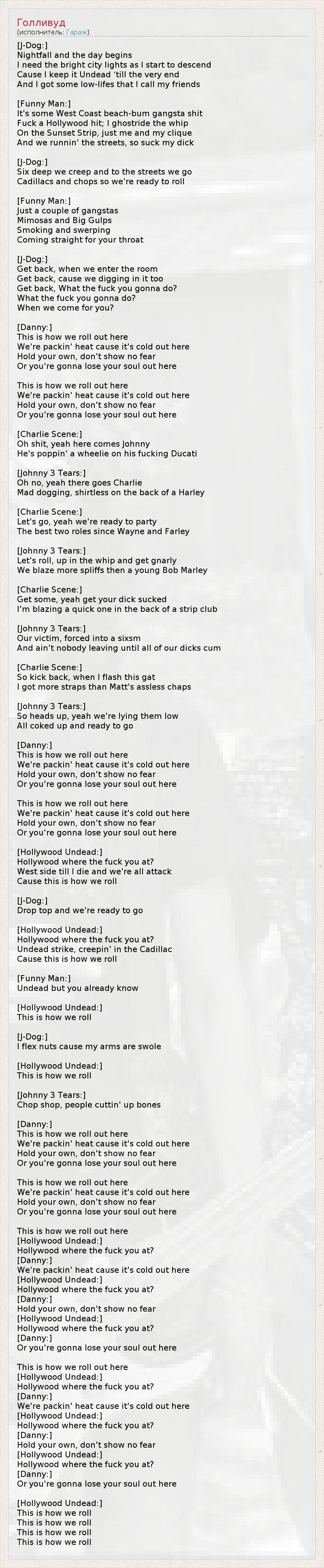 1 – Подразумевается название группы Голливудская Нежить. Он будет в ней до конца своих дней.