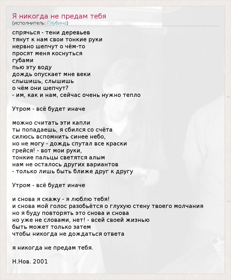ГлавнаяИсполнителиГлубинаЯ никогда не предам тебя