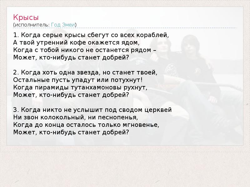 А как ты думаешь, о чем песня "Крысы" ?