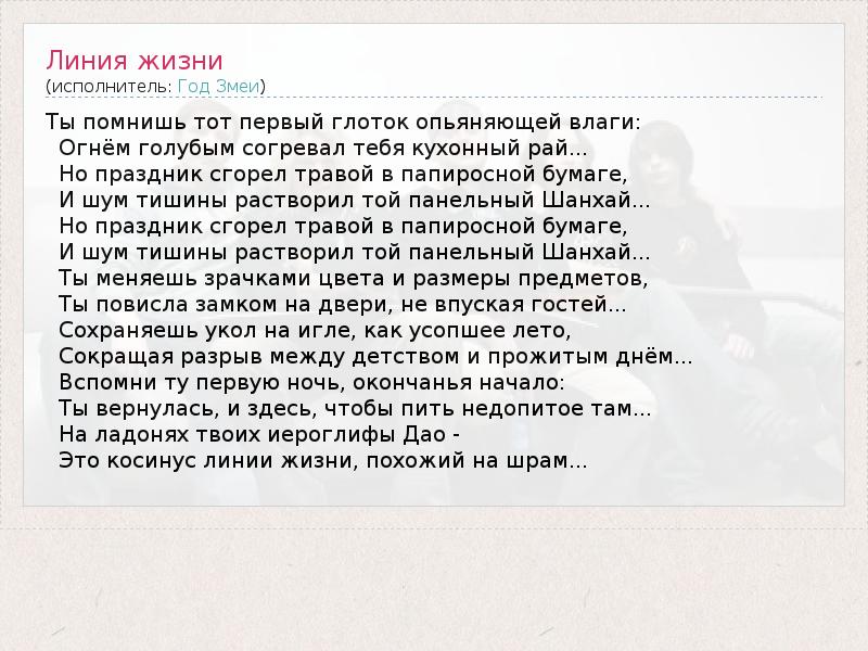 А как ты думаешь, о чем песня "Линия жизни" ?