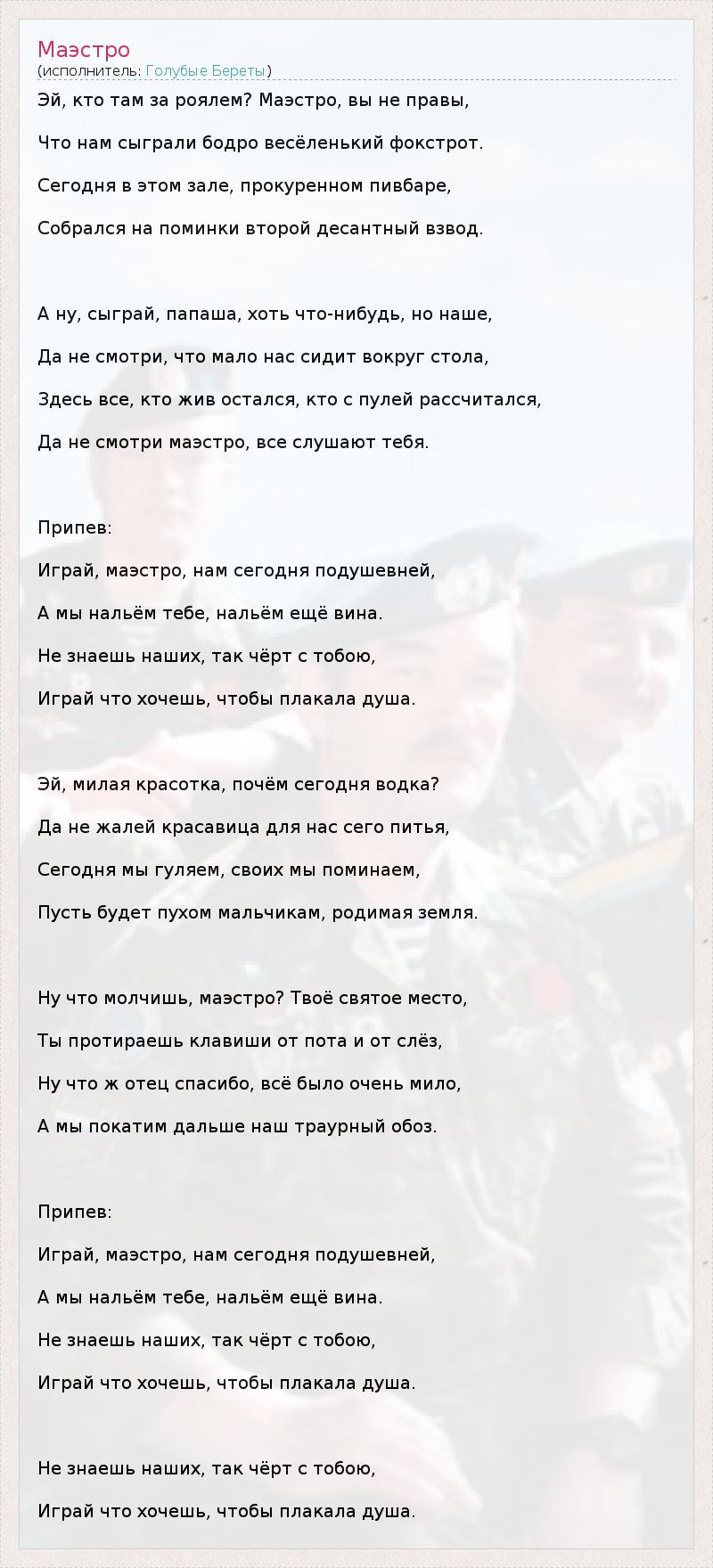 А как ты думаешь, о чем песня "Маэстро" ?