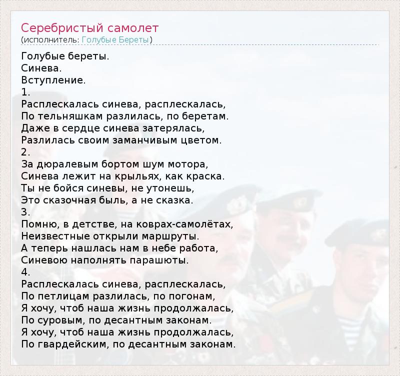 ГлавнаяИсполнителиГолубые БеретыСеребристый самолет
