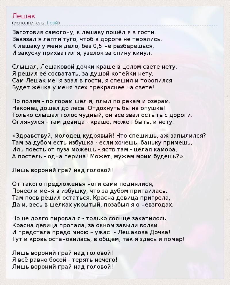 А как ты думаешь, о чем песня "Лешак" ?