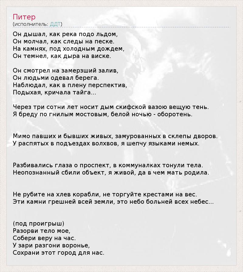 А как ты думаешь, о чем песня "Питер" ?