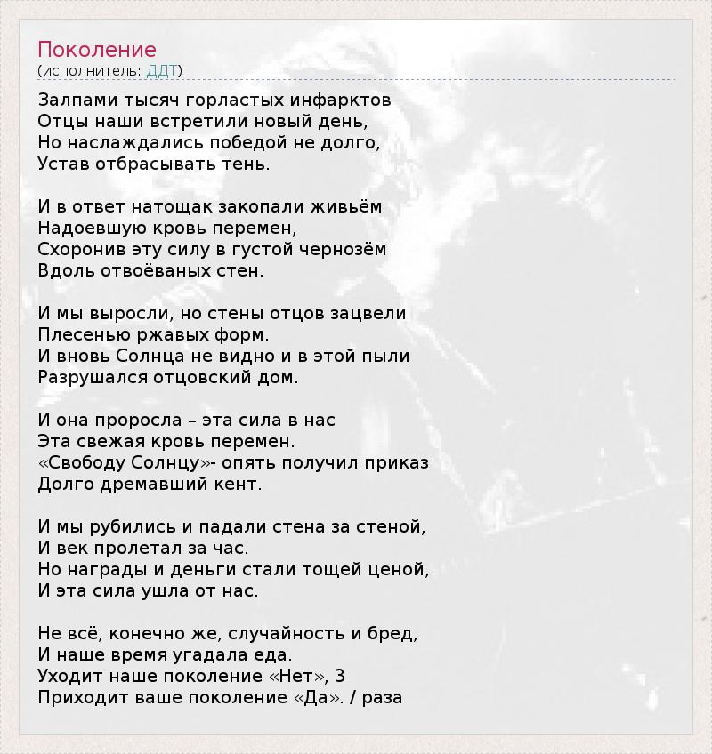 А как ты думаешь, о чем песня "Поколение" ?