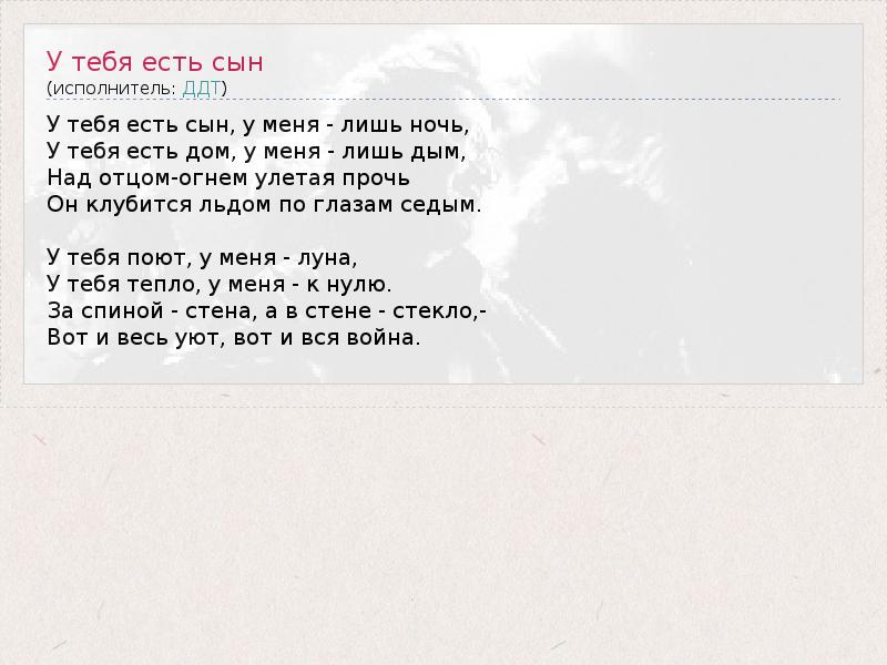 ГлавнаяИсполнителиДДТУ тебя есть сын