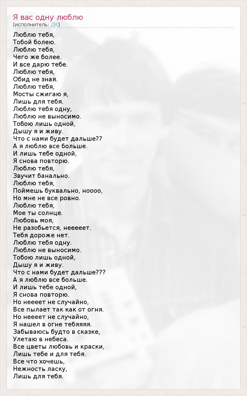ГлавнаяИсполнителиДКЯ вас одну люблю