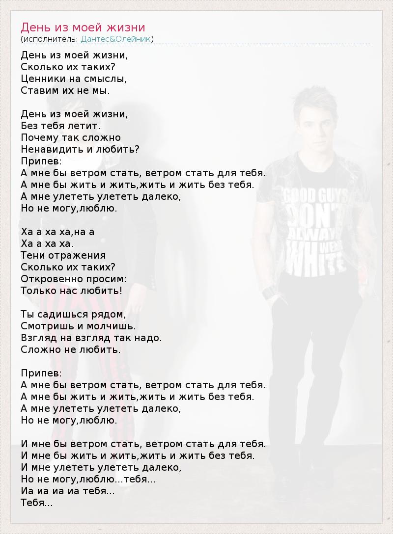 ГлавнаяИсполнителиДантес&ОлейникДень из моей жизни