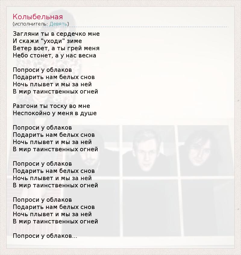 А как ты думаешь, о чем песня "Колыбельная" ?