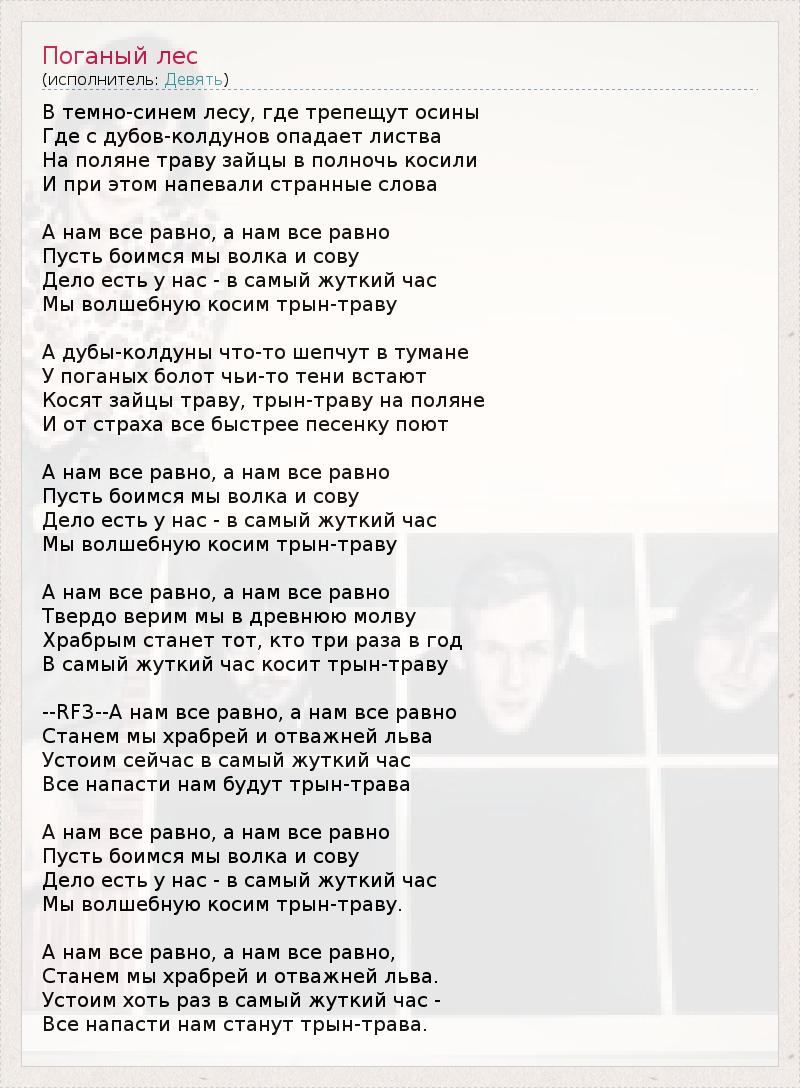 А как ты думаешь, о чем песня "Поганый лес" ?