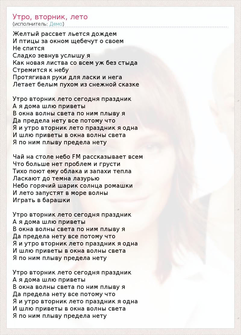 ГлавнаяИсполнителиДемоУтро, вторник, лето