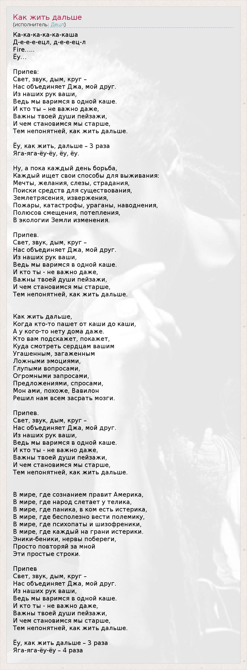 А как ты думаешь, о чем песня "Как жить дальше" ?