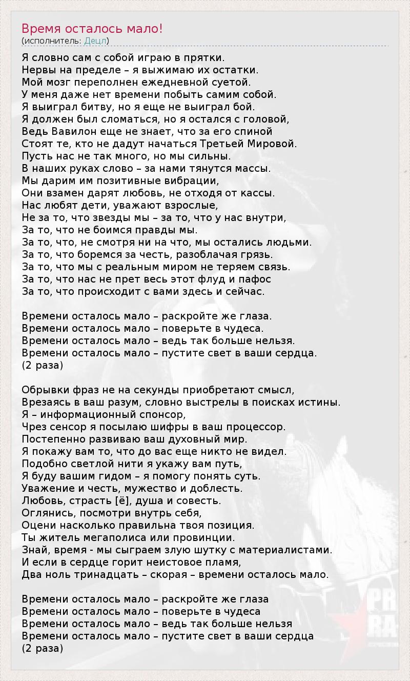 ГлавнаяИсполнителиДецлВремя осталось мало!