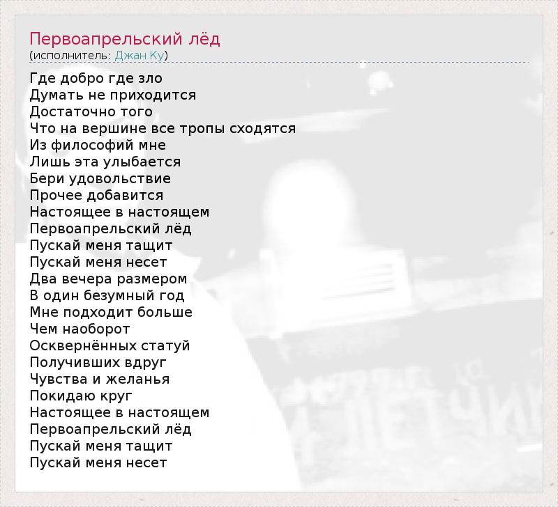 А как ты думаешь, о чем песня "Первоапрельский лёд" ?