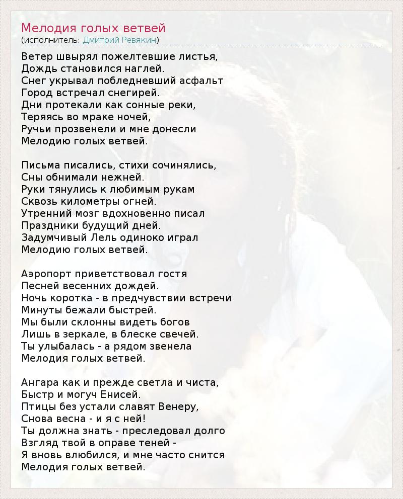 ГлавнаяИсполнителиДмитрий РевякинМелодия голых ветвей