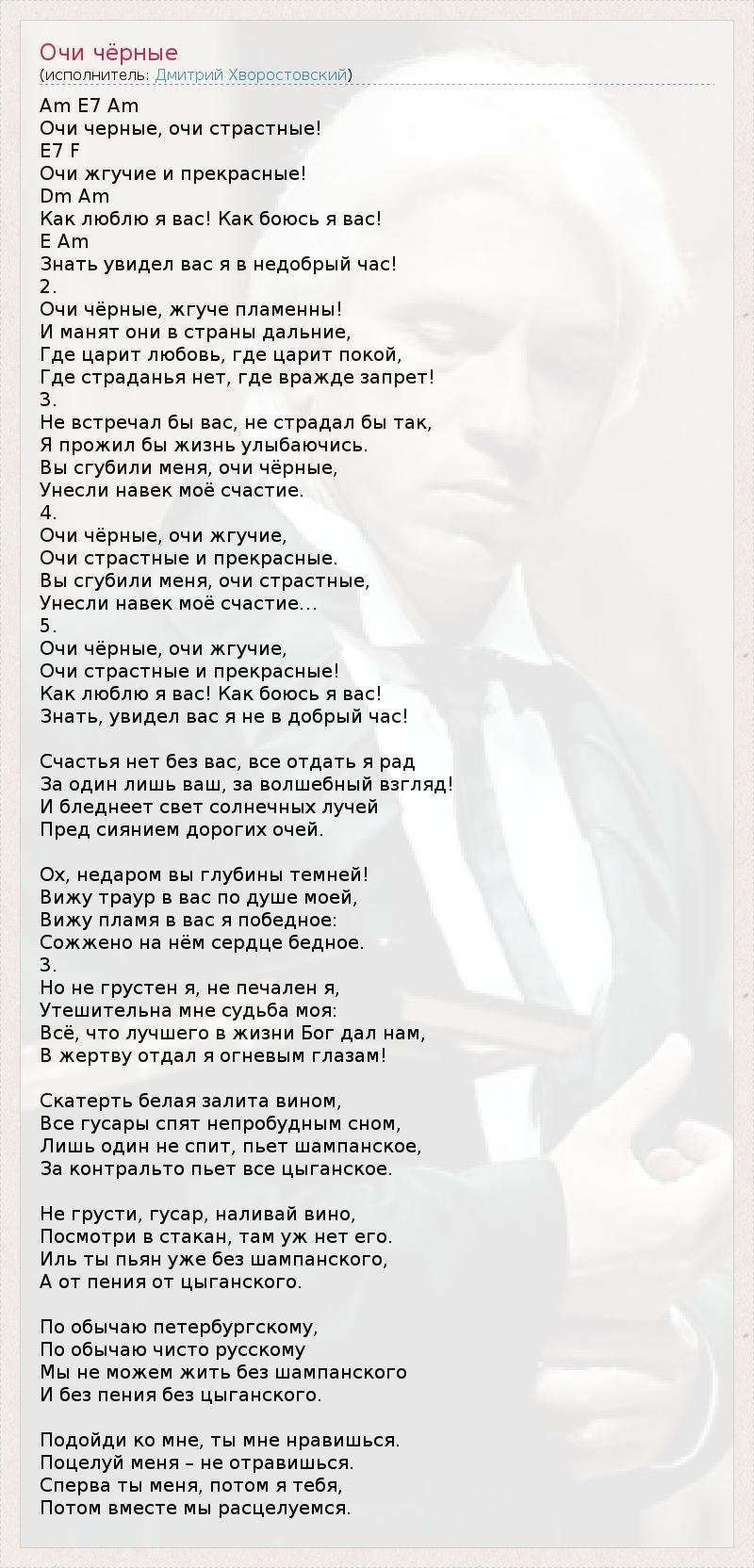 А как ты думаешь, о чем песня "Очи чёрные" ?