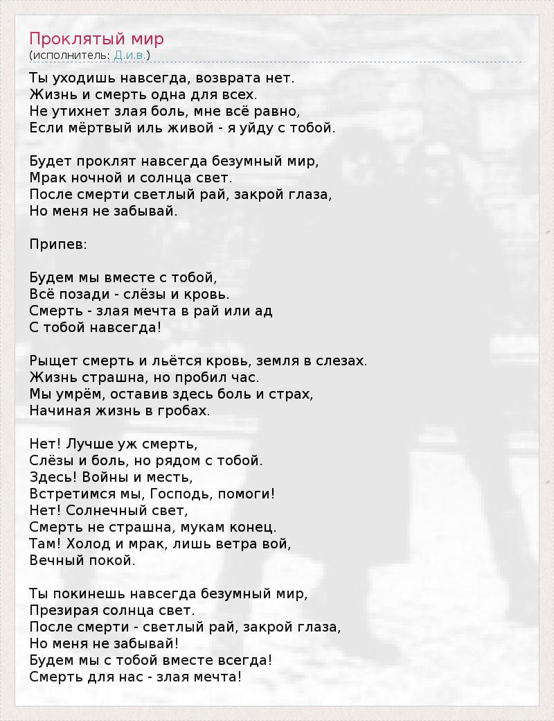 ГлавнаяИсполнителиД.и.в.Проклятый мир