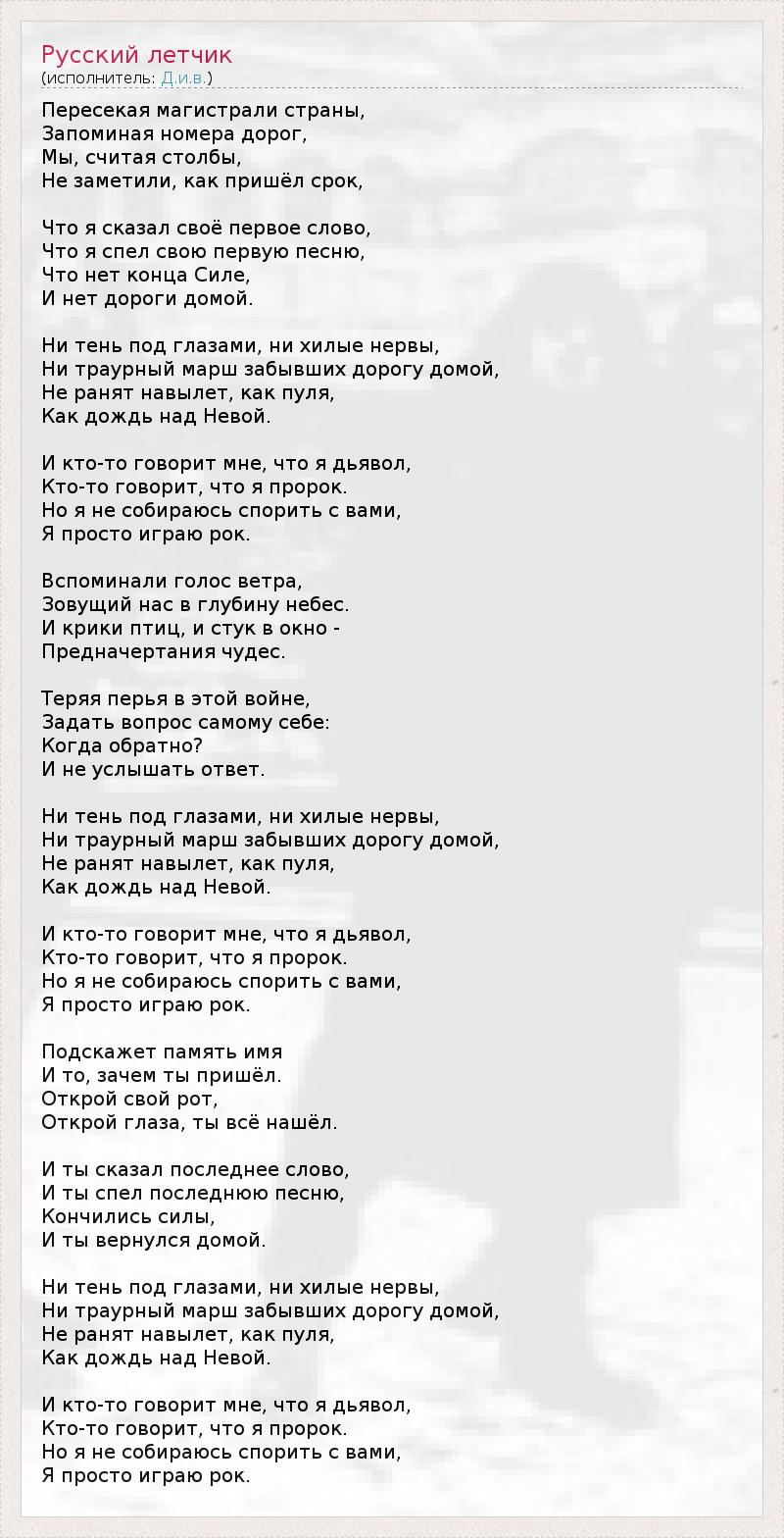 ГлавнаяИсполнителиД.и.в.Русский летчик