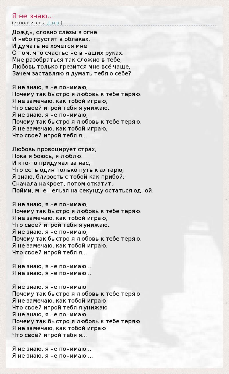 А как ты думаешь, о чем песня "Я не знаю…" ?