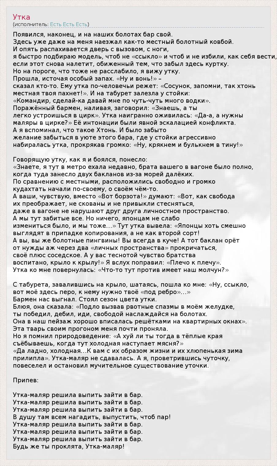 А как ты думаешь, о чем песня "Утка" ?