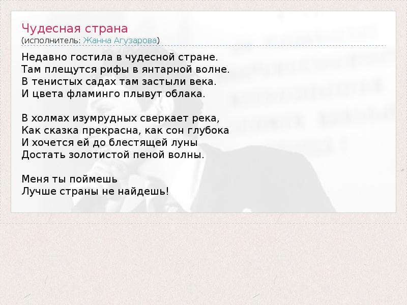 А как ты думаешь, о чем песня "Чудесная страна" ?