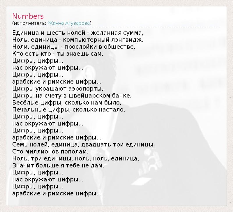 А как ты думаешь, о чем песня "Numbers" ?