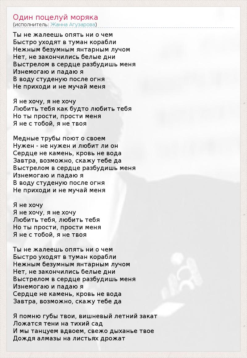 ГлавнаяИсполнителиЖанна АгузароваОдин поцелуй моряка