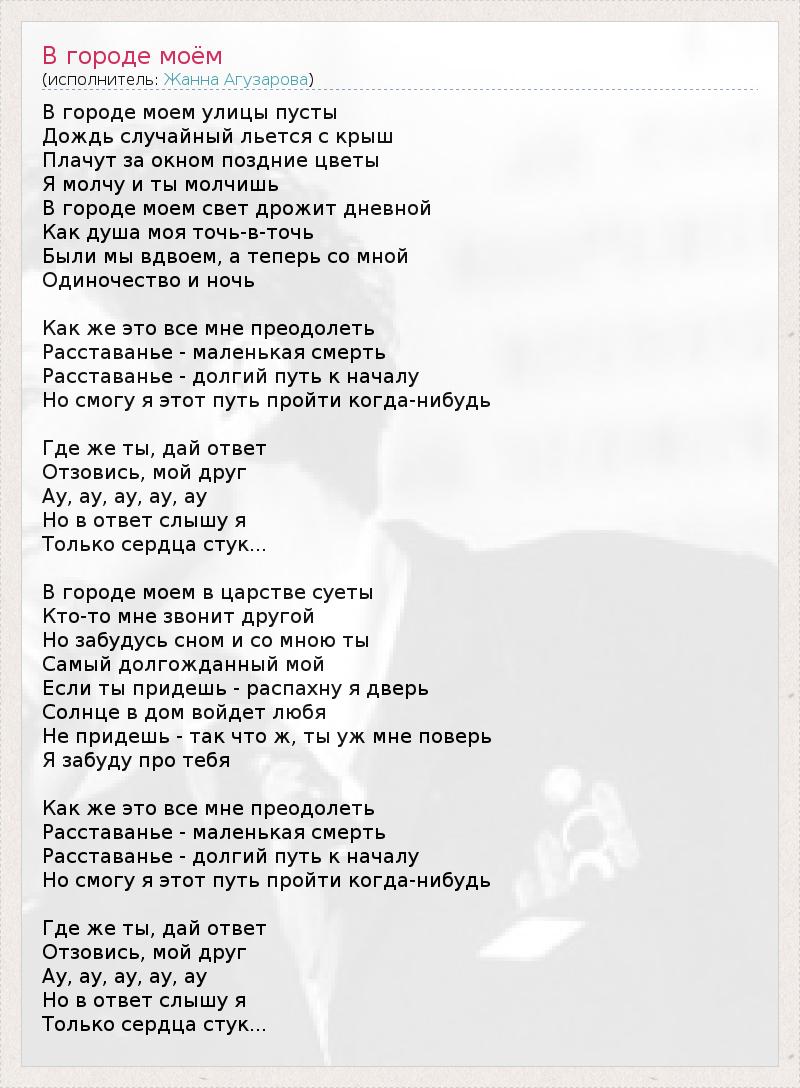А как ты думаешь, о чем песня "В городе моём" ?