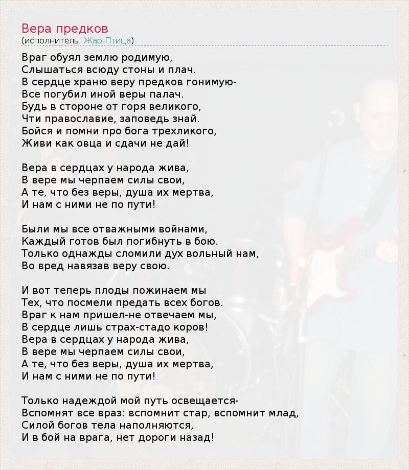 В сердце храню веру предков гонимую-