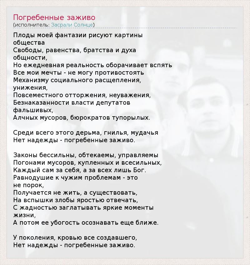 А как ты думаешь, о чем песня "Погребенные заживо" ?