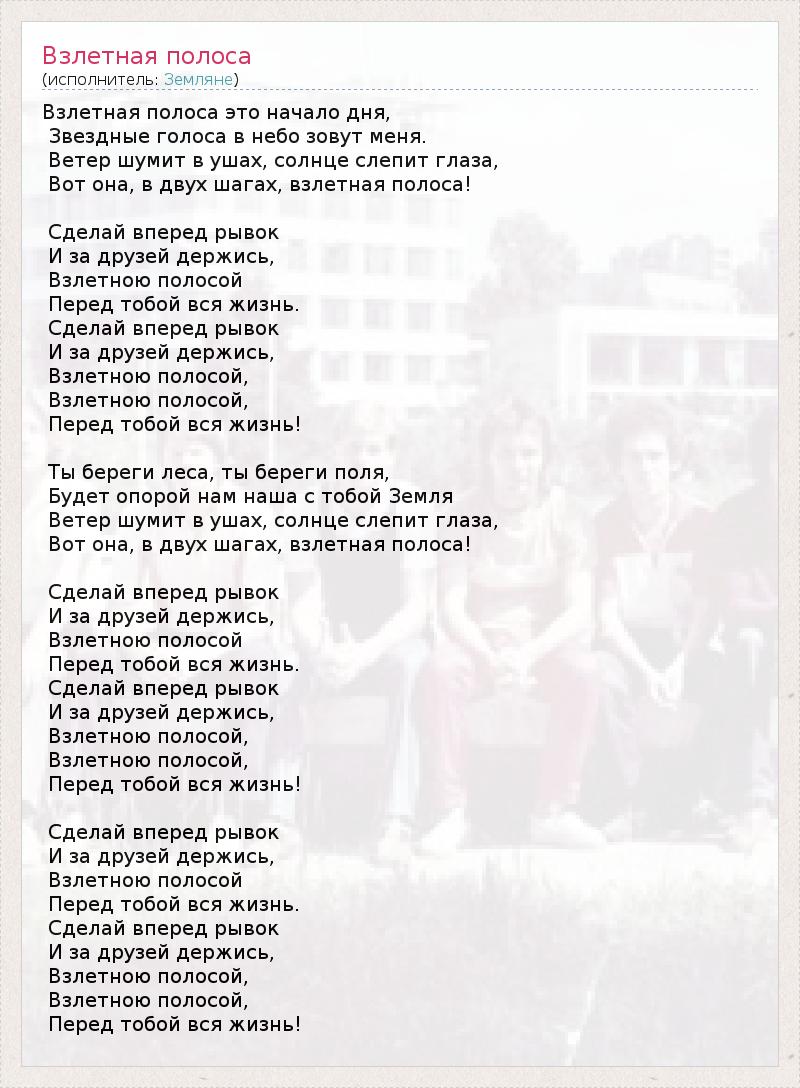 А как ты думаешь, о чем песня "Взлетная полоса" ?
