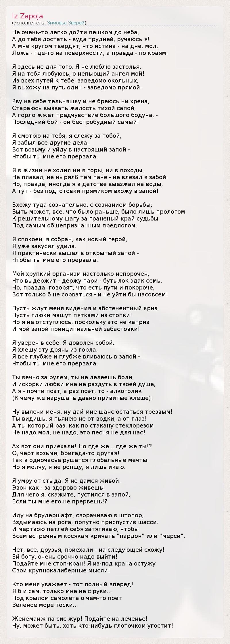 А как ты думаешь, о чем песня "Iz Zapoja" ?