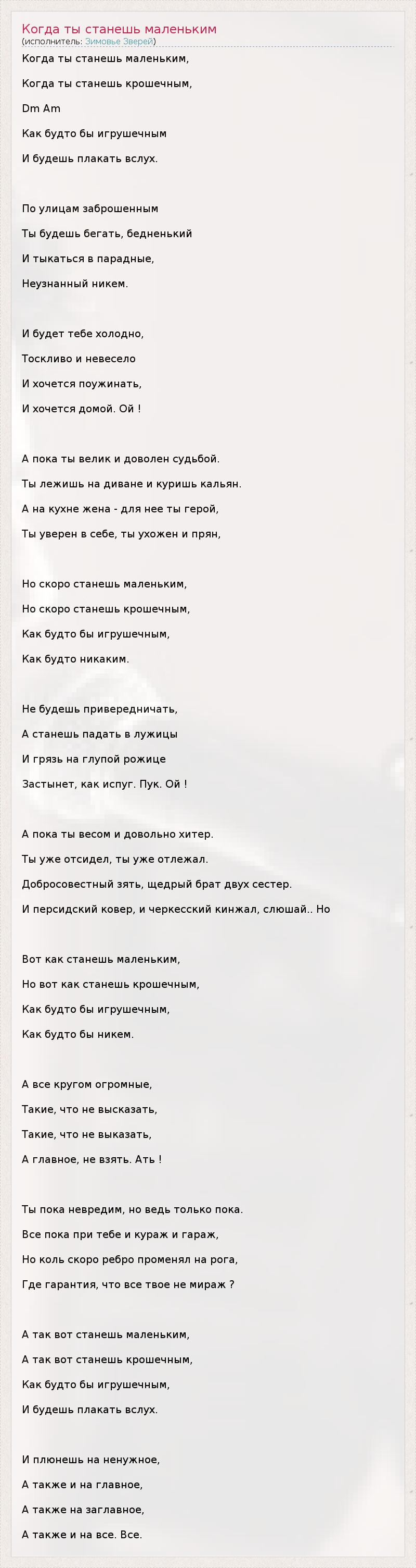 ГлавнаяИсполнителиЗимовье ЗверейКогда ты станешь маленьким