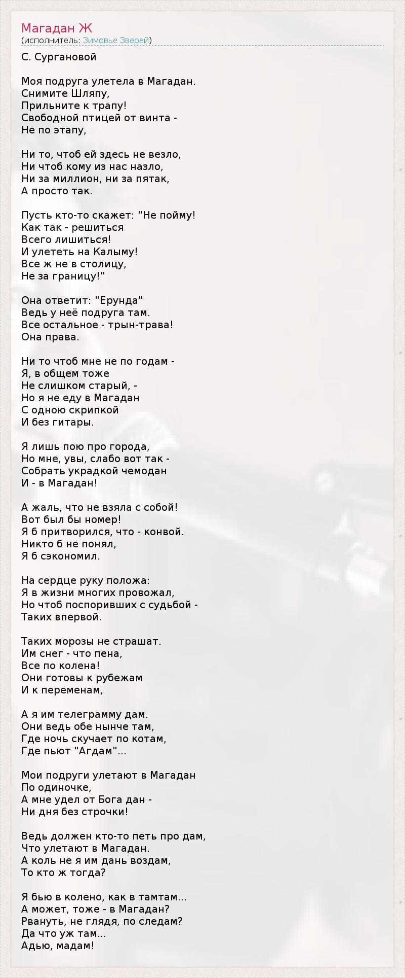 А как ты думаешь, о чем песня "Магадан Ж" ?